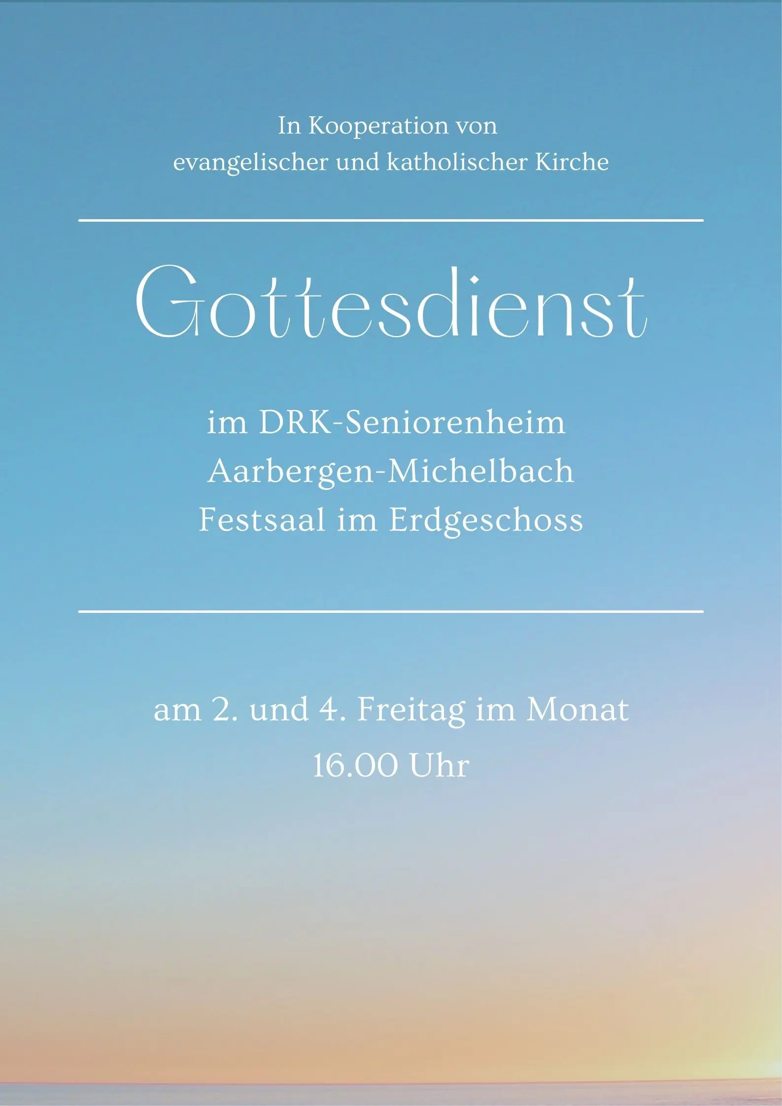 Nicht Sonntag, sondern Donnerstag wird Gottesdienst gefeiert - im Seniorenheim Aarbergen-Michelbach, jeweils von 16.00 Uhr bis ca. 16.35 Uhr.