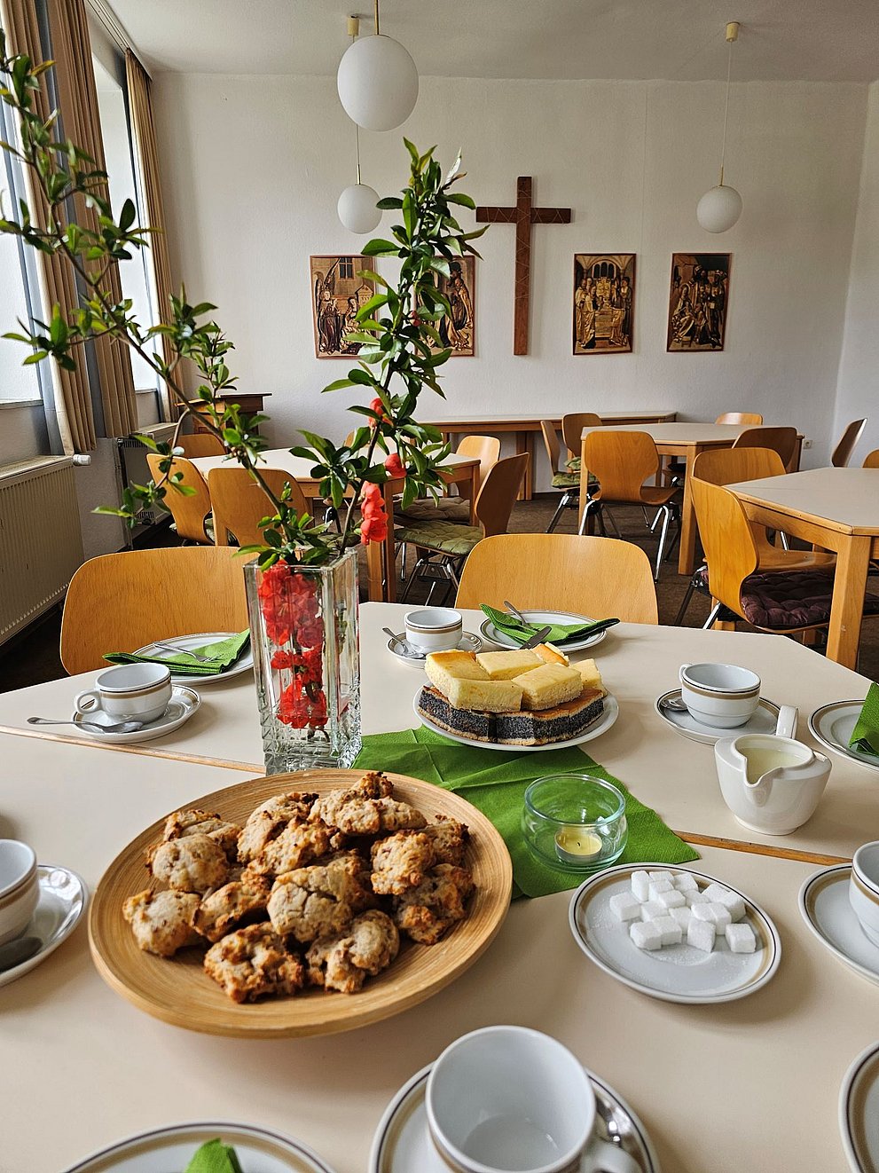 Nach dem Reinkommen an einem wunderbar dekorierten Tisch Platz nehmen, gemeinsam die Tageslosung lesen, einen Impuls zu einem Bibelvers/Bibeltext hören und darüber ins Gespräch kommen, sich anschließend bei Kaffee/Tee und leckerem Kuchen erzählen, einander nicht aus den Augenverlieren, Gemeinschaft erleben und sich (meist) noch mit einem vorbereiteten Thema beschäftigen oder auch mal einem Quiz.